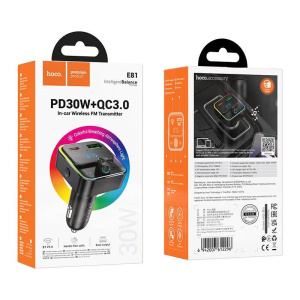 FM-трансмиттер АЗУ 1USB+1Type-C QC3.0 PD30W Bluetooth 5.0 HOCO E81 (Black)