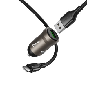 АЗУ HOCO Z62 1USB 3.0A 18W+QC3.0 быстрая зарядка + кабель Type-C (Metal grey)