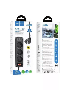 Сетевой фильтр Hoco NS2 - 3 гнезда+3USB 1.8м 4000W (Black)